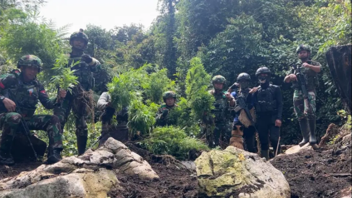 PAPUA, PRONews5.com – Patroli Keamanan oleh Satgas Yonif 751/VJS dan Satgas Intel lainnya dipimpin langsung oleh Dansatgas Yonif 751/VJS, Letkol Inf Erwan Harliantoro ke arah Hutan Dusun Ngutok, Kampung Kabiding, Distrik Oksibil kembali menghasilkan penemuan ladang ganja dengan jumlah Pohon yang tertanam sekitar 740 batang, Selasa (21/10/2025).