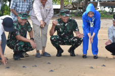 Dukung Pelestarian Alam, Kodaeral XII Lepas Penyu di Pantai Camar Bulan