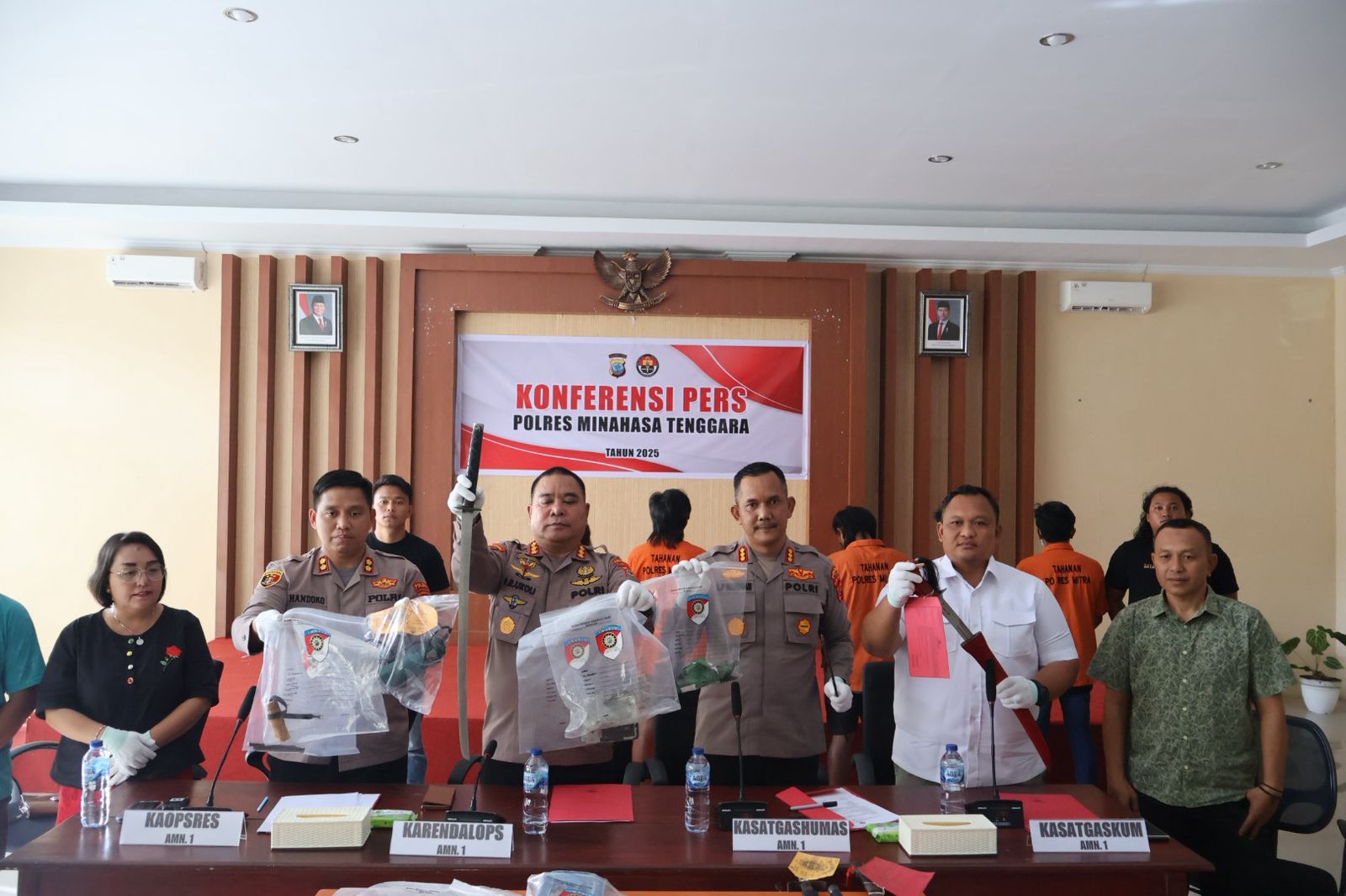 “Tiga tersangka terkait pelemparan, dua orang membawa senjata tajam, dan lima lainnya membuat senjata tajam seperti panah wayer,” ujarnya dalam konferensi pers di Mapolres Minahasa Tenggara, Selasa (2/12/2025).