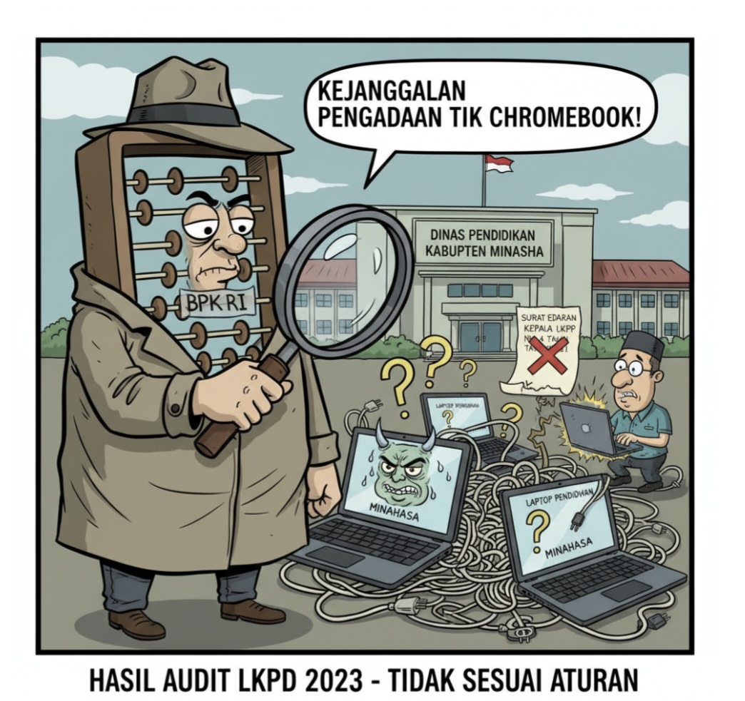 MINAHASA, PRONews5.com — Badan Pemeriksa Keuangan (BPK) RI menemukan kejanggalan dalam pengadaan perangkat Teknologi Informasi dan Komunikasi (TIK) Chromebook oleh Dinas Pendidikan Kabupaten Minahasa.