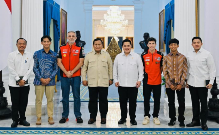JAKARTA, PRONews5.com – Presiden Republik Indonesia, Prabowo Subianto, menerima kunjungan juara dunia MotoGP Marc Marquez bersama dua pembalap muda Indonesia, Mario Aji dan Veda Ega Pratama, di Istana Merdeka, Jakarta, pada Selasa, 30 September 2025.