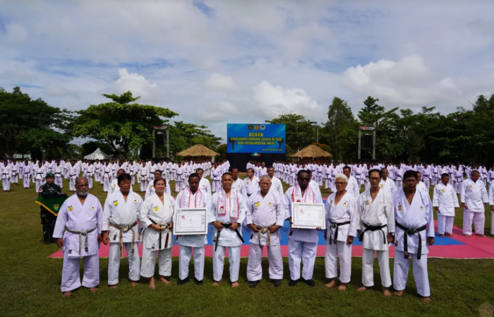 MERAUKE, PRONews5.com – Pangdam XXIV/Mandala Trikora Mayjen TNI Lucky Avianto memimpin pengukuhan 1.683 prajurit sebagai pemegang Sabuk Hitam INKAI sekaligus mencatatkan rekor MURI (Museum Rekor Indonesia) sebagai Ujian Karate Sabuk Hitam dengan Peserta Prajurit Terbanyak. Kegiatan digelar di Lapangan Upacara Kodam XXIV/MT, Jl. Poros Tanah Miring, Merauke, Kamis (4/12/2025).