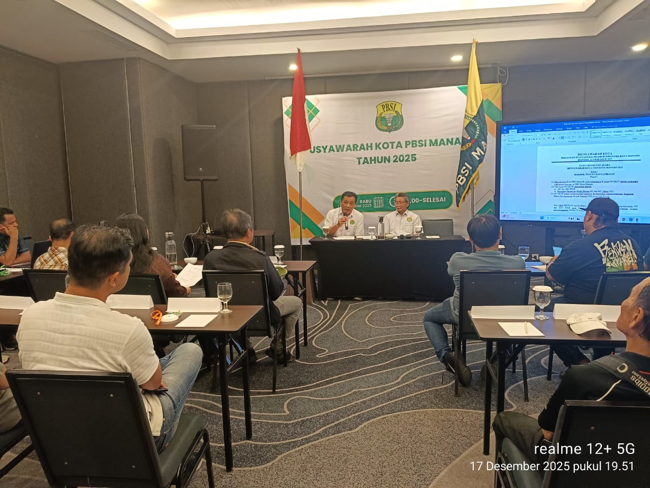 Muskot PBSI Manado dipimpin langsung oleh Donald Monintja bersama Ketua Umum Pengprov PBSI Sulut Prof. Dr. Adrian Umboh, Sp.Ak. Sidang berlangsung dinamis, namun seluruh tahapan musyawarah tetap berjalan hingga selesai sesuai ketentuan organisasi.
