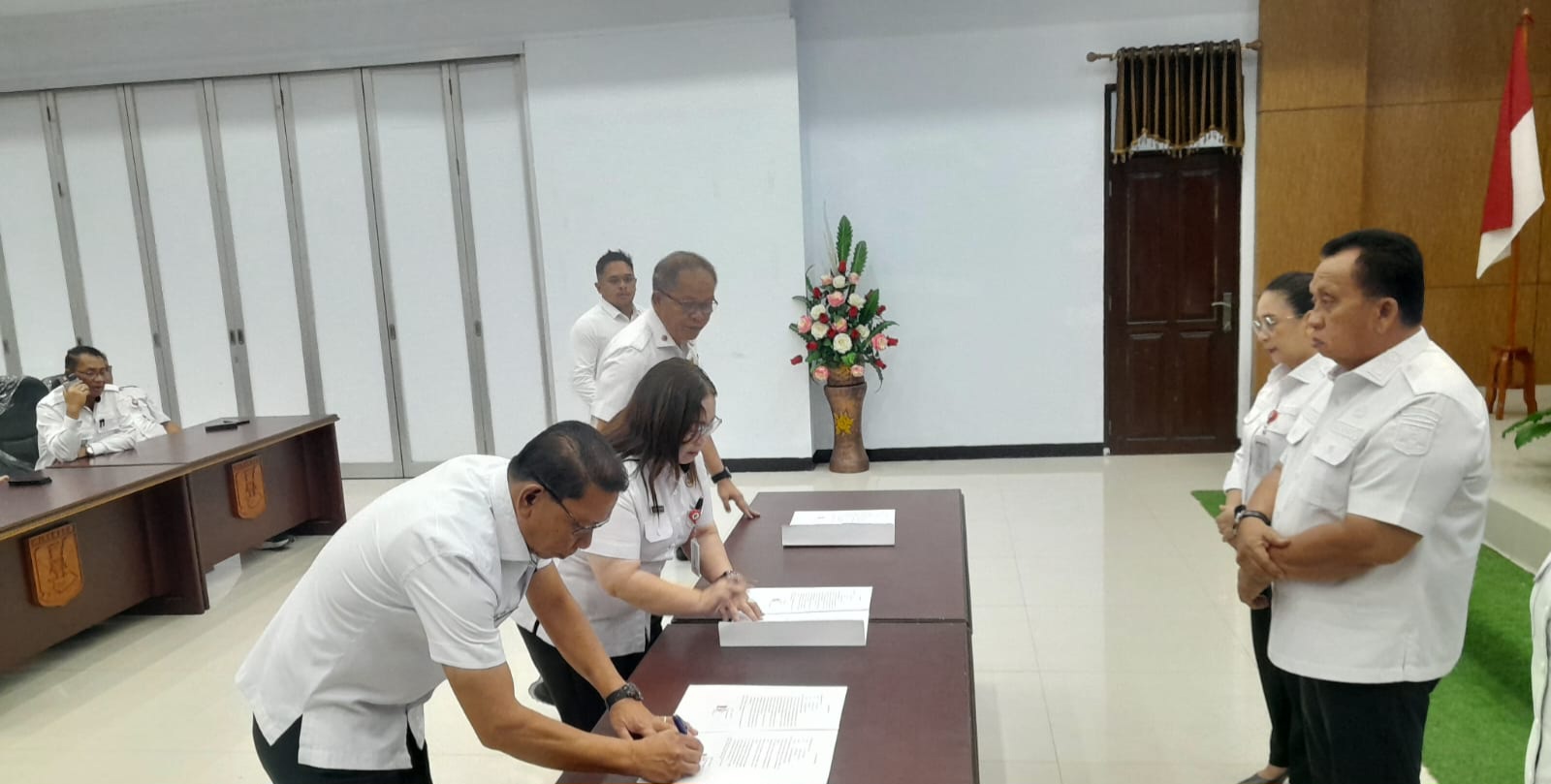 Prosesnya dimulai dari Sekretaris Daerah (Sekda) Dr. Lynda D. Watania, disusul para asisten, inspektur, sekwan, kepala badan, kepala dinas, kepala bagian, hingga seluruh camat se-Kabupaten Minahasa.