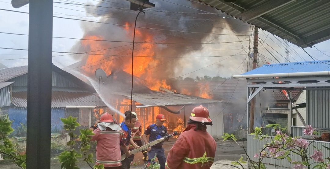 Kepanikan pecah ketika si jago merah tiba-tiba mengamuk, melahap empat rumah warga hingga rata dengan tanah.