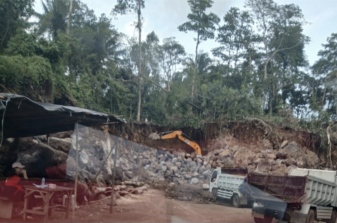 Pantauan wartawan pada 20 Februari 2026 mendapati aktivitas penambangan berlangsung pada siang hari. Sebuah ekskavator terlihat mengeruk tanah dan batu, sementara sejumlah pria berjaga di pintu masuk lokasi.
