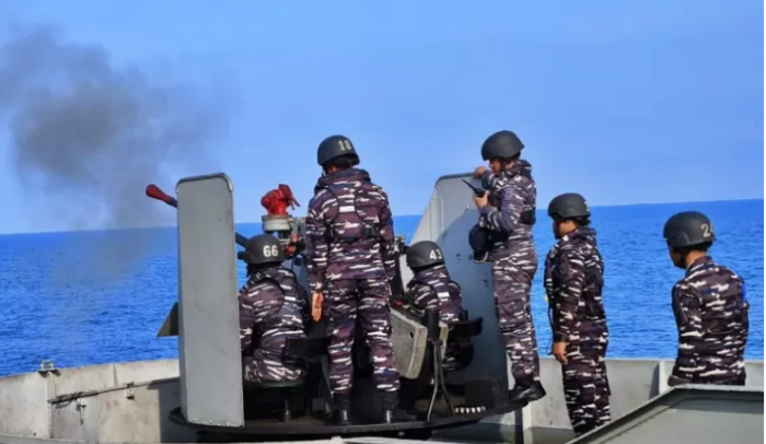 Gunakan Meriam, Prajurit KRI Teluk Amboina-503 Tembak Benda Berbahaya di Laut Jawa
