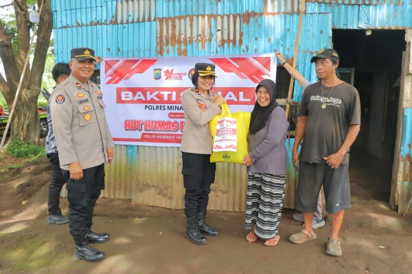 Seksi Humas Polres Minut Bagikan Bansos kepada Warga di Airmadidi Atas dan Tumaluntung